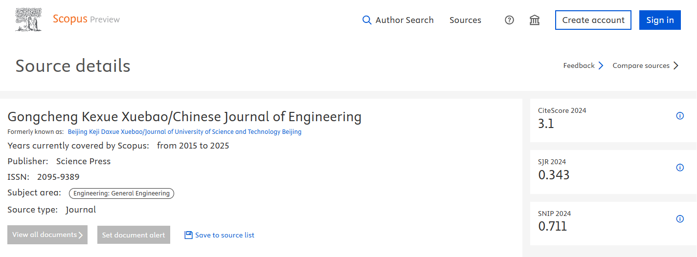 Gongcheng Kexue Xuebao publishes research in science, engineering, technology, and multidisciplinary fields.